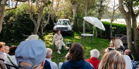 Die Zuschauenden wandern in kleinen Gruppen durch diese verschiedenen Welten und treffen dabei auf die Spielenden, die im öffentlichen oder privaten Raum in Szene gesetzt werden. Es werden 3 Rundgänge für jeweils 20 Personen angeboten. Start jeweils um 15:00/15:20/15:40 Uhr.
